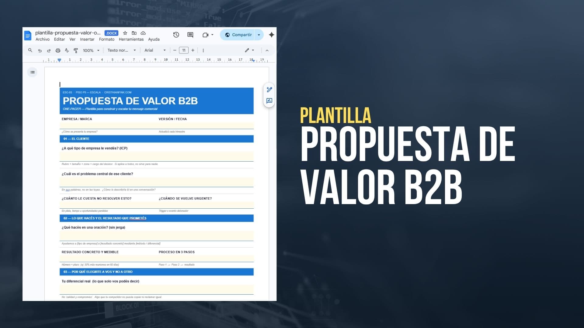 - A quién le vendo: [perfil de cliente, industria, tamaño de empresa]